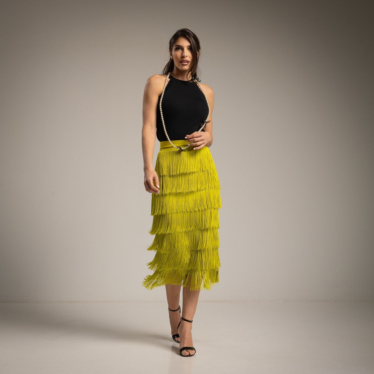 Fringed Skirt- Lime