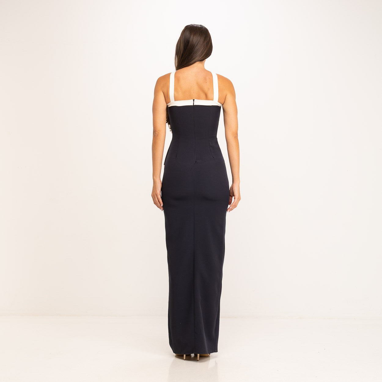 Maxi Two-tone Peplum Dress With Crossed Neckline