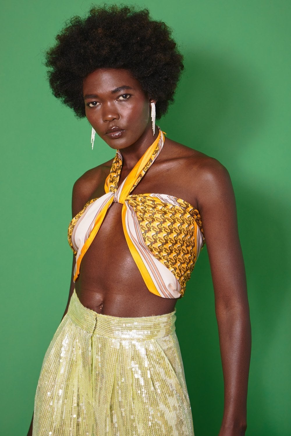 Gorgeous Silk Scarf that can be used as a top, a headscarf, styled on your bag and many others.